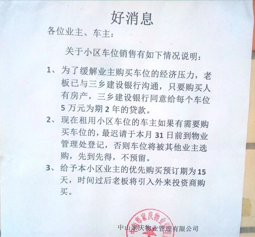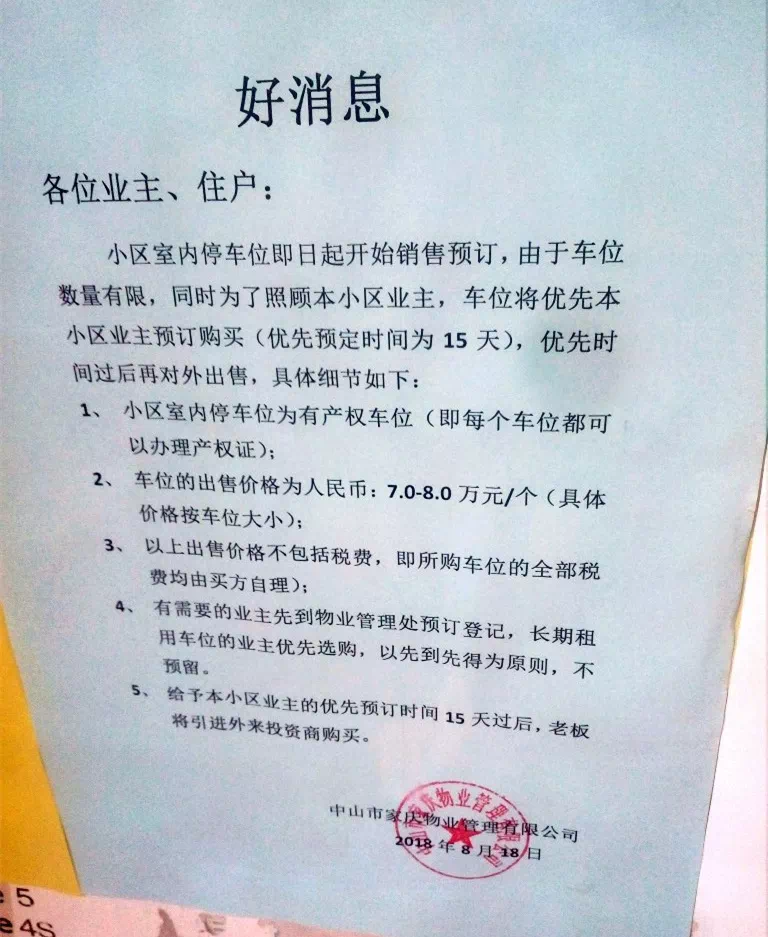 物业将架空层划车位出售!中山这个小区业主炸了!使用权到底算谁