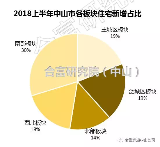 在2018年中山市各板块住宅新增相比往年较为平衡,南部板块新增最多,西北板块新增较少。