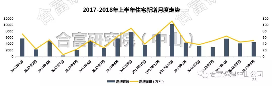根据合富研究院(中山)监测: 2018年上半年中山市住宅新增27195套,同比上升34%。