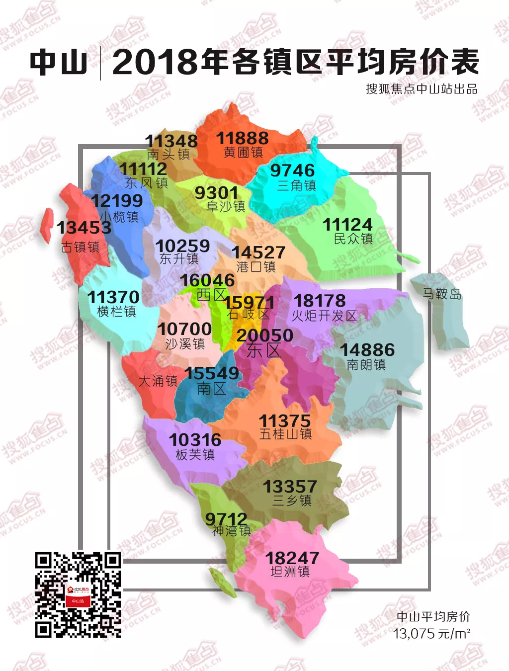 2018年中山各镇区的平均房价,为13075元/㎡。