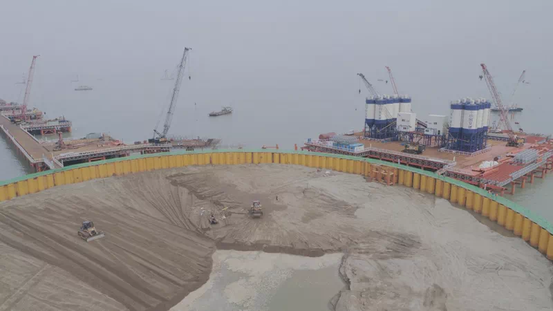 3月13日,深中通道又有最近消息,伶仃洋大桥东锚碇施工现场秩序井然,一切顺利。
