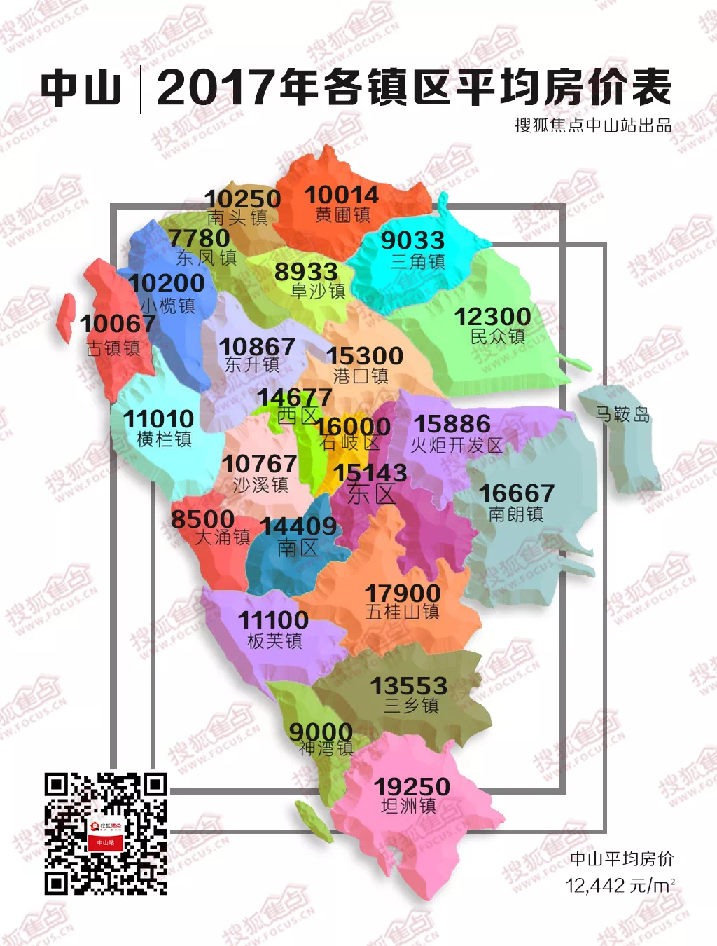 这是2015年的中山各镇区的平均房价,为5295元/㎡。