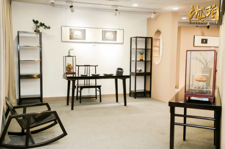 ▲家具深色的厚重感与玉器浅色的清秀感相呼应