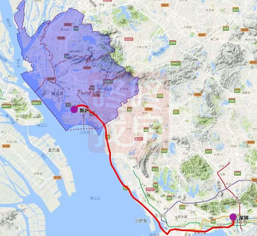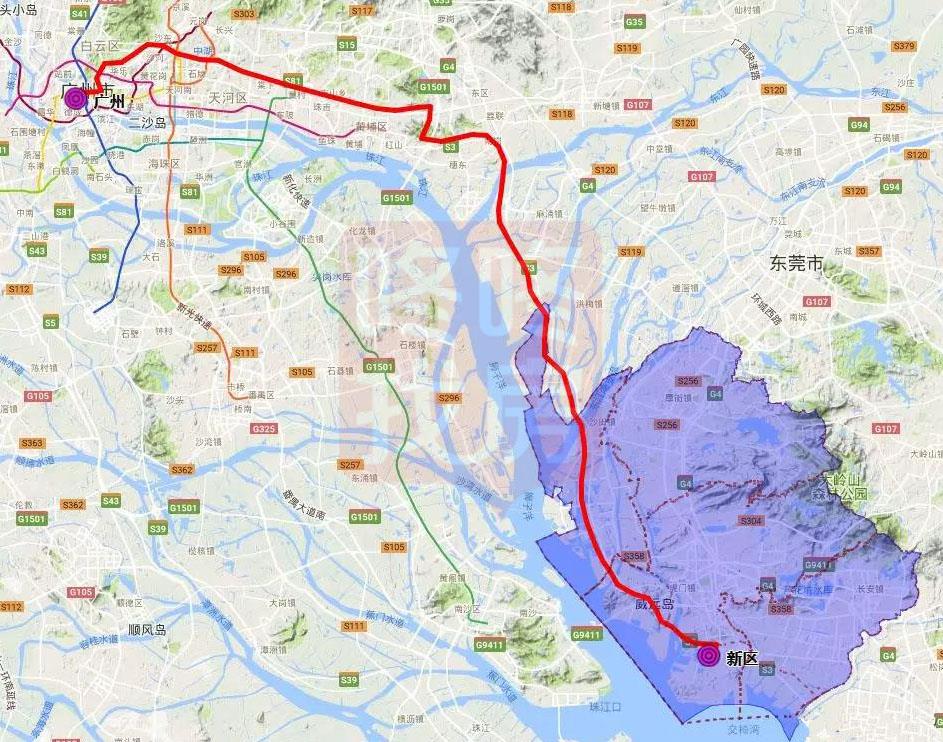 广深第三高铁:经深圳西丽、机场东,接入滨海湾后,沿江往北接广州东站,实现深港、广佛半小时通达。