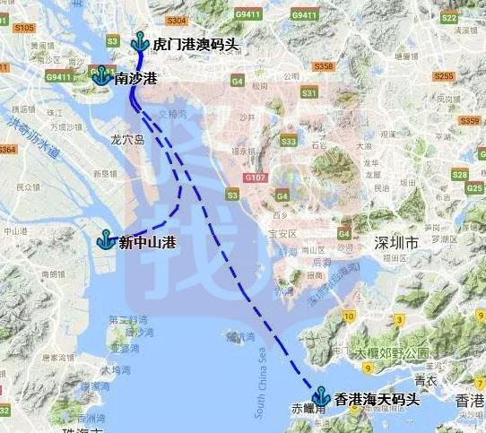 新区—澳门特区,由滨海湾新区高铁站出发,经滨海大道、广深沿江高速、港深西部公路、元朗公路、青朗公路、港珠澳大桥到达澳门,公交运营线路全长约140公里,沿线覆盖滨海湾新区高铁枢纽、深圳宝安机场、香港国际机场、澳门维多利亚酒店等重要客流点。