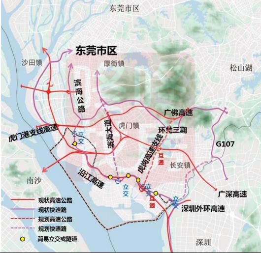 中南虎线城轨:2020年前开工建设中南虎城际东莞段等项目;远期目标是2030年前建成中南虎城际东莞段等。