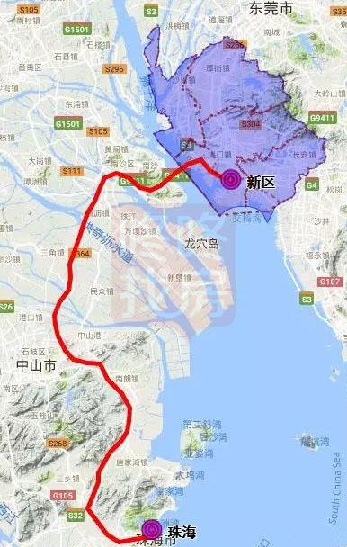 新区—珠海市,由滨海湾新区高铁站出发,经滨海大道、沿江高速、莞佛高速、广澳高速、人民路到达珠海市,公交运营线路全长约100公里,沿线覆盖滨海湾新区高铁枢纽、南沙客运站、中山站、珠海北站。