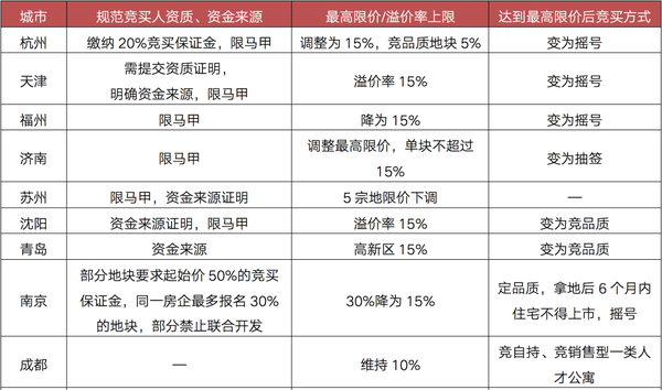 基于此,8月10日自然资源部召开闭门会议,要求集中供地城市优化第二批次土地出让政策,随后,各大城市临时中止土拍,纷纷调整土拍规则,只要涉及三大方面: