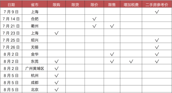 值得注意的是,上海、广州、东莞等9城建立二手房参考价发布机制,引导二手房理性交易,维稳房价预期。其中,上海政策力度最为严苛,将以市场真实价格为依据,对每套房源进行核验,没有通过价格核验的房源不得对外发布。