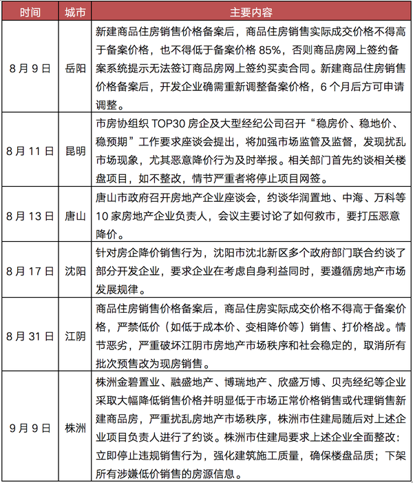 出于稳房价、稳预期的需要,岳阳、昆明等6城相继落地“限跌令”。其中,岳阳、江阴明文规定禁止大幅降价,昆明、唐山、沈阳、株洲采取约谈的方式,禁止房企、中介机构恶意降价、打价格战,扰乱房地产市场秩序。