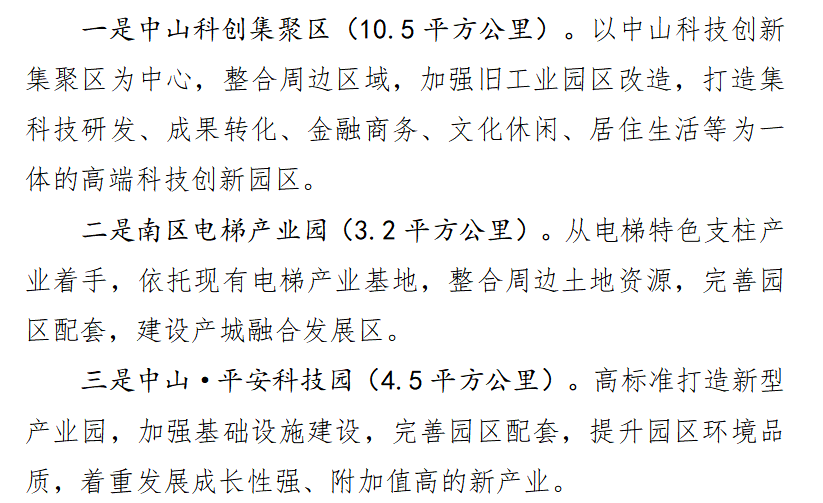 值得一提的是,今年的政府工作报告中明确指出,加快推进中山(南区)科学城建设。同时,在市科技局统筹下,南区已启动谋划了中山科技资源集聚区、电梯产业园建设、中山·平安科技园三大产业平台,积极开展相关前期工作。
