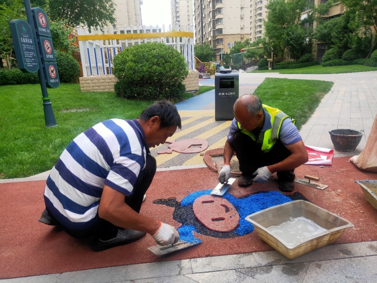 济南龙湖春江悦茗“社区冻龄”行动,工作人员正在进行跑道焕新