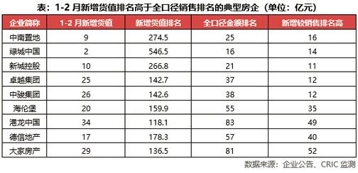部分房企在1-2月份补货积极,超过三成百强房企新增货值排名高于其全口径销售排名。其中,绿城中国、中南置地和新城控股等房企前两月新增货值超过250亿元,新增货值排名较全口径销售排名高出10位左右。全年充裕的可售货值,给未来投资、销售节奏留出足够空间,也将对年终业绩形成正面效应。