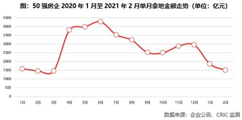 另一方面,受假期因素影响,销售50强房企2月投资金额环比下降20%,延续了自去年6月份以来下滑趋势。1-2月累计投资金额近3400亿元,较去年同期上涨10%,主要是受同期基数较低所致。在整体拿地情绪不高的情况下,包括越秀、中骏等房企单月投资额环比增幅较大,而部分1月未拿地的房企也在2月启动了投资计划。