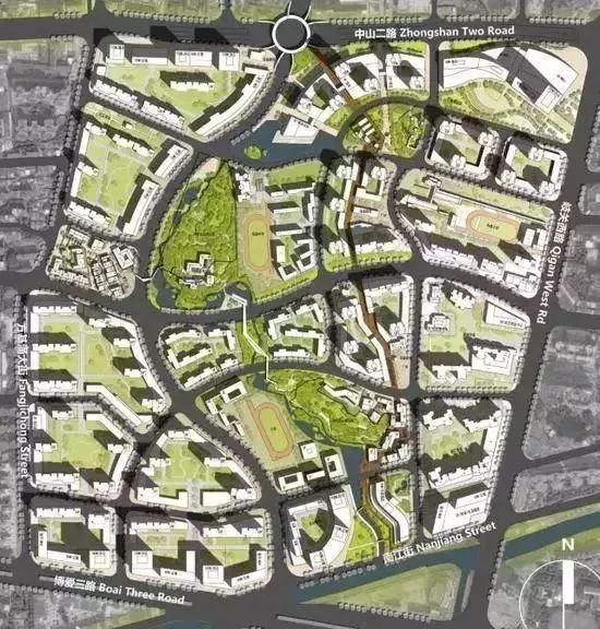 员峰片区,位于中山市政府西北部,岐江东岸,员峰山西侧,与南面的历史城区和逸仙湖公园遥相呼应。项目总用地面积 30.6 公顷,现状建筑除了村民自建住宅、市场等之外,还有祠堂、寺庙等历史文化建筑。片区更新以开放型邻里街区为理念,通过整合复合的城市功能,建设一个独特的中心和一系列节点与多样化开放空间,重新整合现代生活的“居住,工作,购物,休闲”等因素,把员峰片区重构成一个紧凑、便捷、多样化的邻里街区。