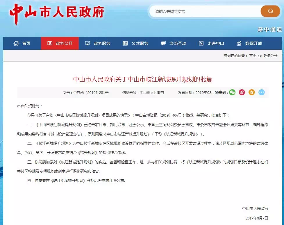 这两项规划已通过中山市人民政府审批并于市政府门户网站上公示