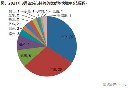 CRIC监测数据显示,3月挂牌的涉宅地块中,起拍单价超过1万元/平方米的高单价土地幅数共有85宗,其中集中供地的重点城市有62宗,分布在北京、广州和无锡三个城市,均是首批集中供应土地已经挂牌的城市。