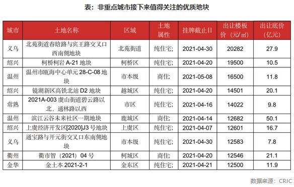 考虑到4月份将迎来大批重点城市首批集中供地挂牌,预计接下来的供应将会维持高位。未来土拍焦点将集中在北京、广州、天津、无锡、绍兴、义乌、温州等城市。