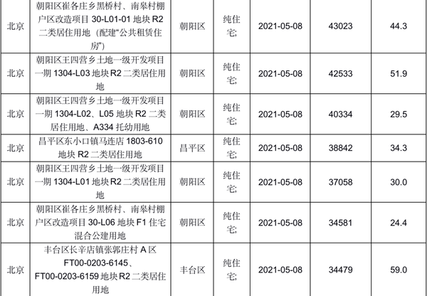 其中,北京起拍单价超过3万元/平方米的地块有16宗之多,分别位于海淀、朝阳、昌平、大兴、丰台和石景山区,其中一度因“竞地价、竞政府持有商品住宅产权份额、竞高标准商品住宅建设方案”的挂牌出让方式引发社会热议,并被中止出让的两宗海淀区树村地块也在首次集中挂牌之列。