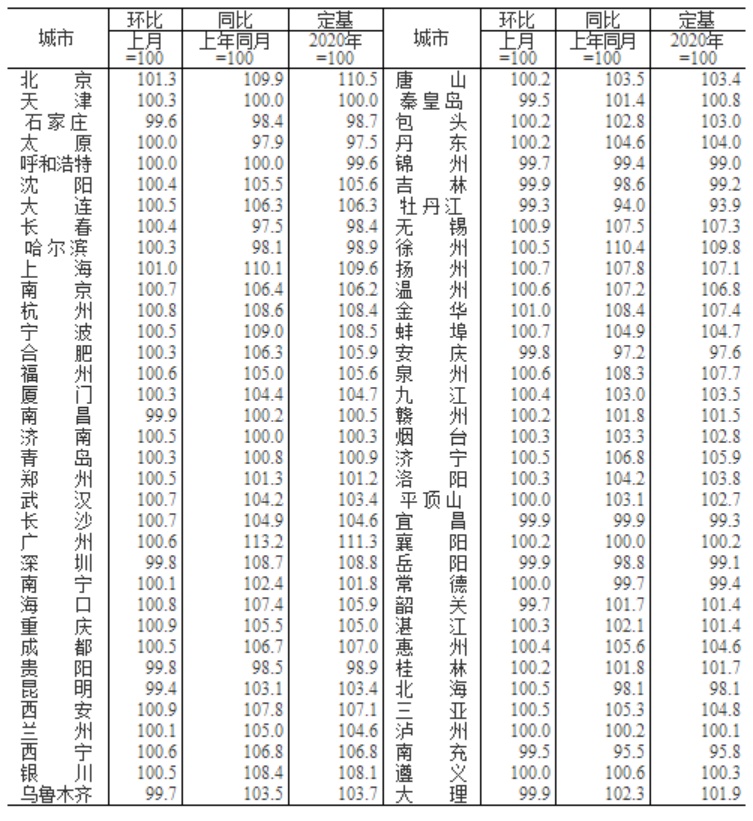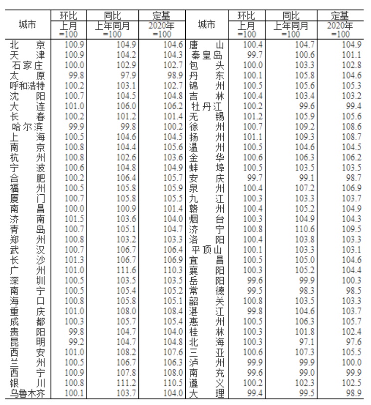 (2021年6月70个大中城市新建商品住宅销售价格指数,,图源国家统计局,央广网发)