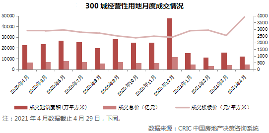 土地市场方面,在广州、重庆、沈阳、长春和无锡5个重点城市首次集中供地的影响下,4月份土地市场溢价率刷新3年较高纪录,楼板价也创近一年新高。