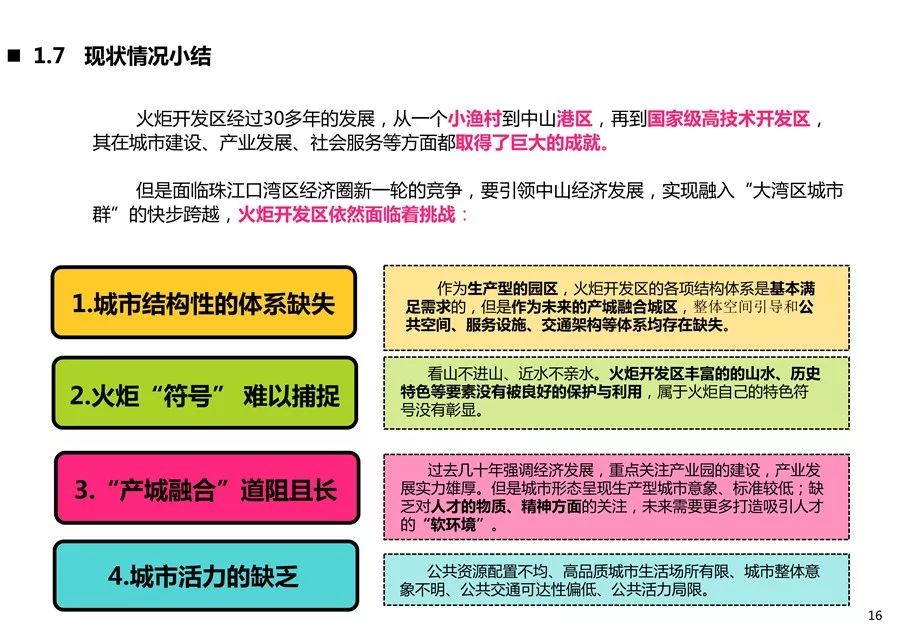 作为生产型的园区,火炬开发区的各项结构体系是基本满足需求的,但是作为未来的产城融合城区,整体空间引导和公共空间、服务设施、交通架构等体系均存在缺失。