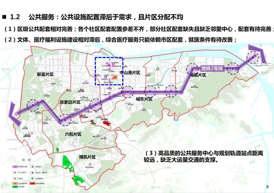 公共资源配置不均、高品质城市生活场所有限、城市整体意象不明、公共交通可达性偏低、公共活力局限。