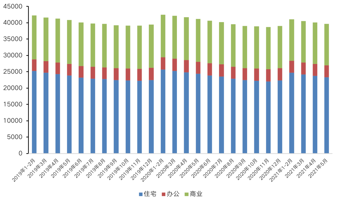 具体而言,得益于市场成交火热,供不应求带动整体库存回落,住宅待售面积降幅显著,较4月减少399万平方米,办公、商业待售面积降幅有限,5月较4月下降均不超20万平方米,整体去化压力依旧较大。