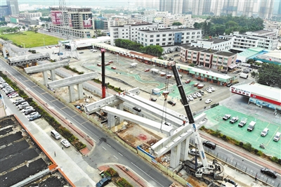 10月15日,坦洲快线三乡平湖路段开始吊装箱梁。记者 缪晓剑 摄