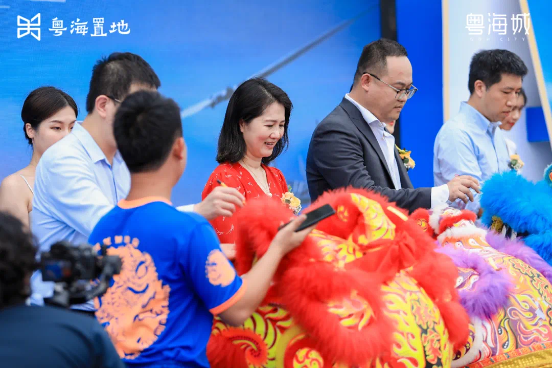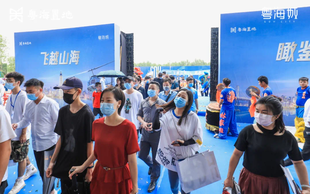 在锣鼓喧天、彩带飘舞下,粤海置地相关领导为金狮点睛,与众多媒体嘉宾共同见证中山马鞍岛粤海城营销中心、滨海艺术样板房的惊艳亮相。伴随着直升机穿越伶仃洋的飞行体验开启,开放现场盛况空前火热。