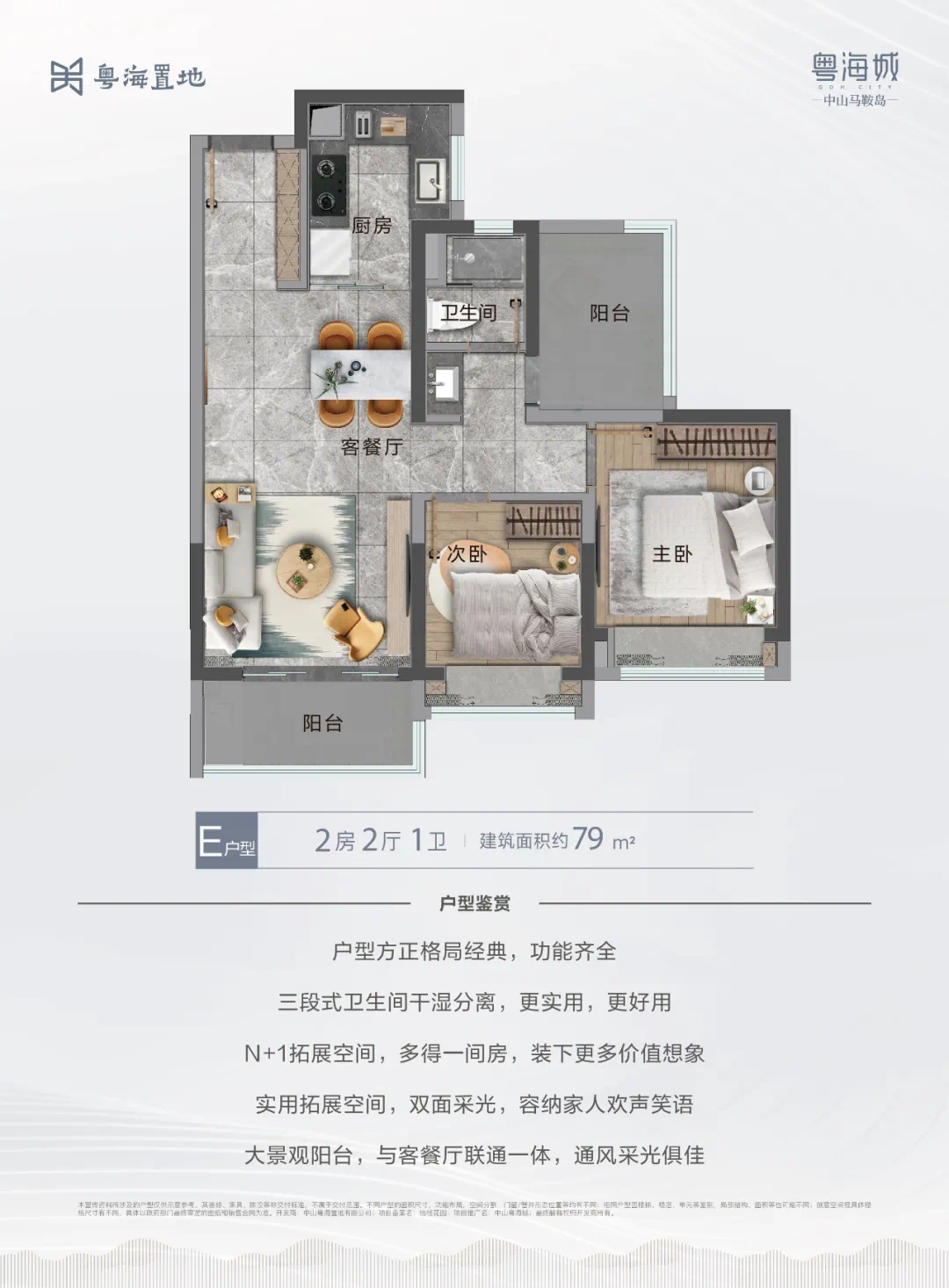 南北通透科学分区,让滨海生活更具质感中山马鞍岛粤海城充分利用空间,把走道纳入客厅和餐厅空间中,提高户型使用率,部分户型采取双阳台的设计,南北通透,阳光开间采光充足,人性化动静分区设计,起居生活互不干扰,容纳大家庭的欢乐时光,让家成为心灵港湾。