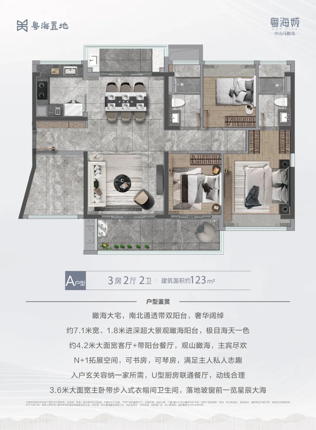 此次营销中心开放,一同亮相的是建面约79-123㎡豪华创意样板房,以此打造深中海岸线上的湾居新封面,开启马鞍岛迈向世界湾区的生活样本。
