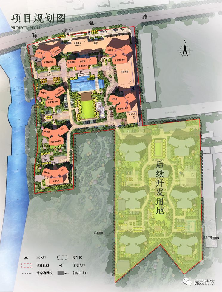 项目位于彩虹大道和翠红路交汇处,合景招商·映月台总占地面积77.52 亩(约52000㎡),占地容积率 2.7(目前城区项目容积率基本3.0-3.5,我们项目密度更低,舒适性更高),绿化率达36%,建筑面积约184000㎡,整个项目14栋总共1150户,规划1406个车位,绿化率达36%。(项目分南北区开发,北区由3 栋 17 层洋房及1 栋 24 层洋房和3栋32层洋房组成,(一二三期)面积约10万㎡,共计620户;紧接城区湿地公园。南区暂未进行开发(四期)面积约8.5万㎡,南区(四期)530户, 合共1150户。)住宅停车位约 1398 个,项目规划有瞰河望园洋房及 U-life 商铺,两种产品。