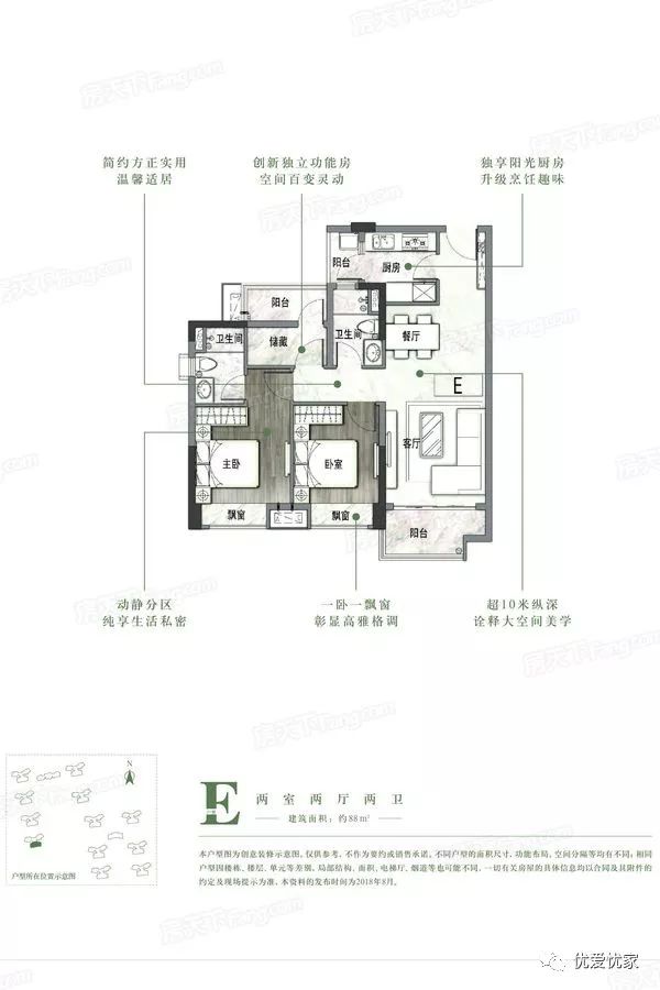 5、E户型88㎡2+1房独享阳光厨房,升级烹饪趣味,方正实用有套房,温馨而居;