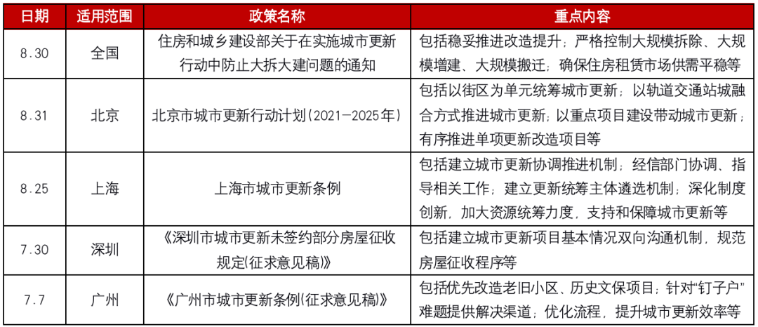 表:《关于在实施城市更新行动中防止大拆大建问题》政策梳理