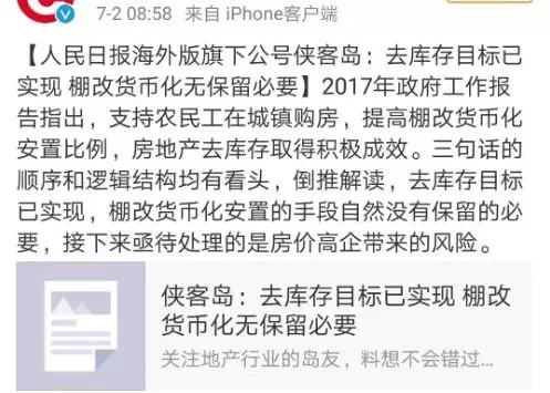 而这两天属于官媒旗下的公众号连续发了《谁推高了三四线的房价?》及《去库存目标已实现,棚改货币化无保留必要》,貌似代表了官方的态度。