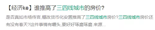 譬如,财经类媒体的《三四线楼市再无未来》、《留给三四线楼市的时间真不多了》。