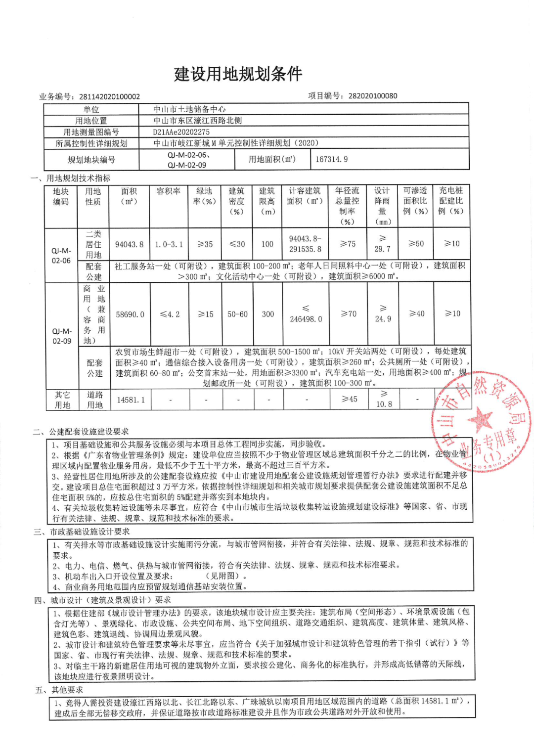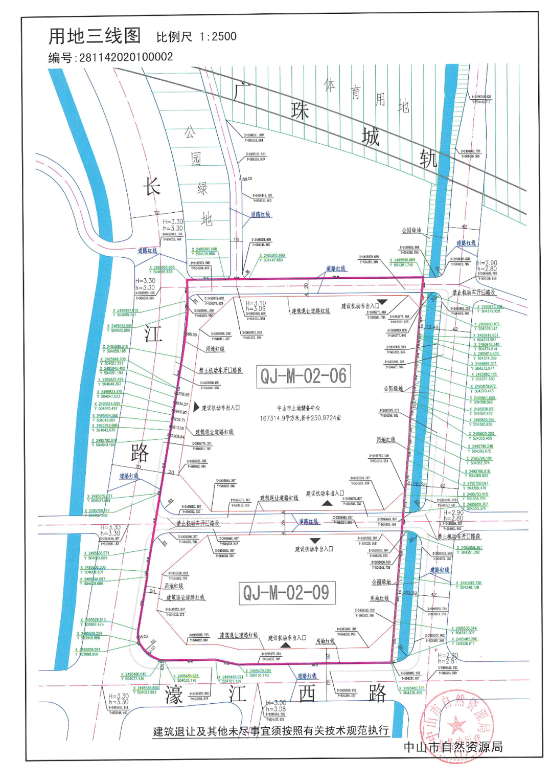 宗地范围,位于中山市东区濠江西路北侧,现状为已平整。土地总面积167314.9平方米(折合250.9724亩),用途为商业用地、二类居住用地、城市道路用地,出让年限为商业用地出让年限40年、二类居住用地出让年限70年。其中,住宅用地面积94043.8平,计容建筑面积上限291535.8平;商业用地面积58690.0平,计容建筑面积上限246498平。合计建面超53万平。