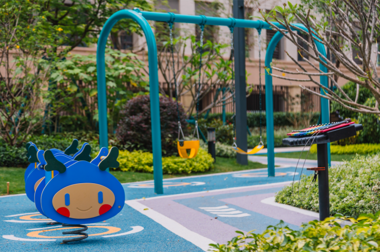 让家长们的带娃再也不用提心吊胆。小湖乐园里的各种设计都费尽心思,一如:针对不同的高度孩子设置不同高度的秋千,并准备摆放的角度,保证摆幅内无人进出或有人挡住,让孩子尽情撒欢。