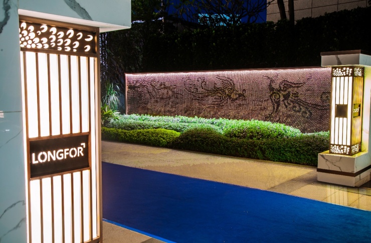 进入大门,步入园区,映入眼帘的是以凤凰振羽为灵感,打造的凤凰羽毛系列艺术创作——香槟金凤凰翅膀抽象雕塑,以及精奢马赛克拼接的凤凰振羽屏风,寓意着吉祥美好的生活就此展开。