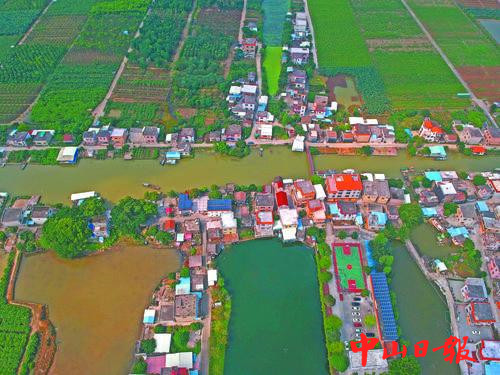 ▲典型岭南水乡风貌的义仓村。该村以蔬菜、水果、花木等农作物种植和水产品养殖为主,河堤绿道景色开阔,村民沿河涌两岸分布居住。