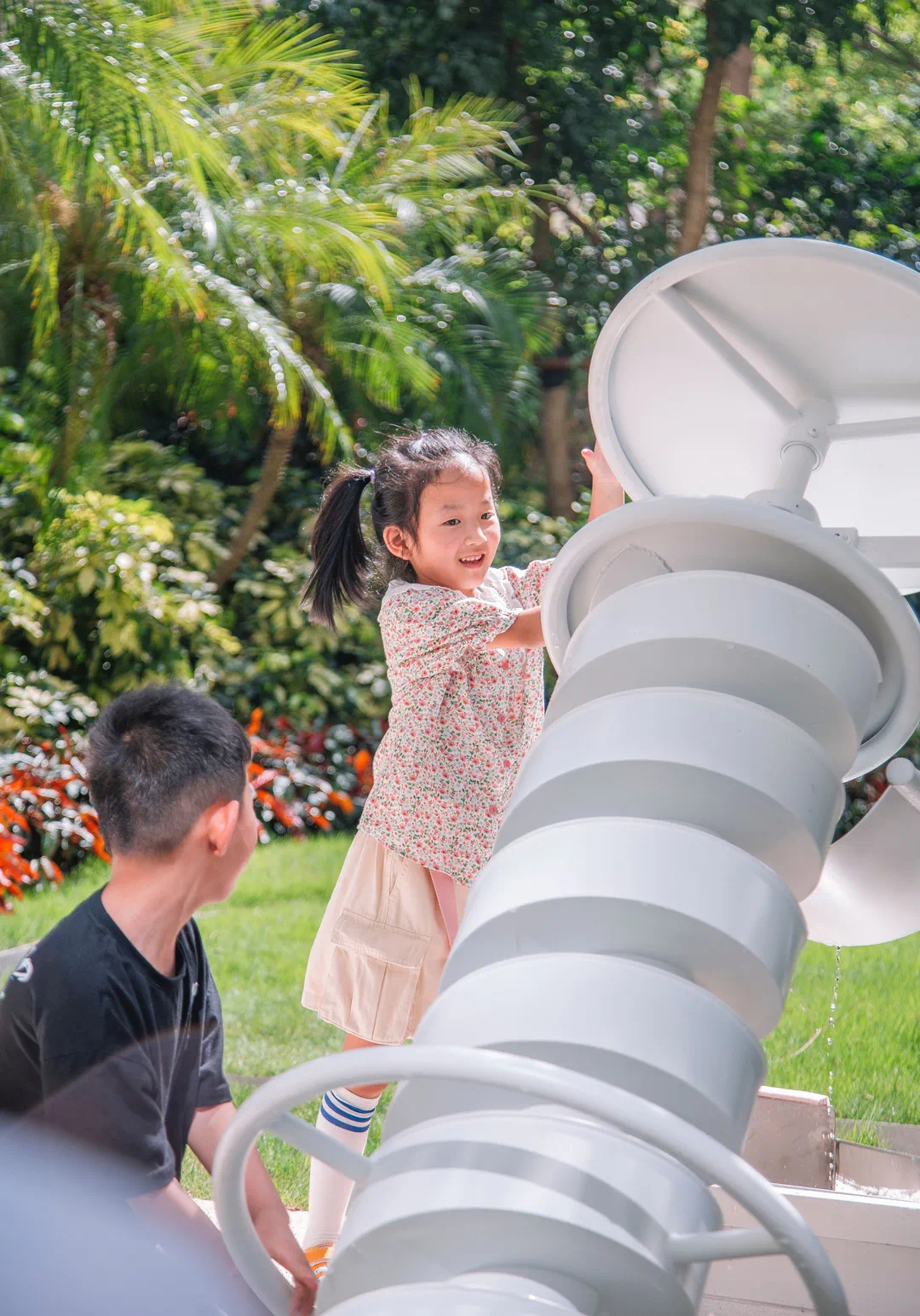 如果你在珠海|首开龙湖·天玺院的龙小湖乐园看到一个小正太,身后总有一个“小尾巴”,那肯定是俊辰没错了。10岁的俊辰和6岁的妹妹欣辰总爱在龙小湖乐园嘻嘻打闹。