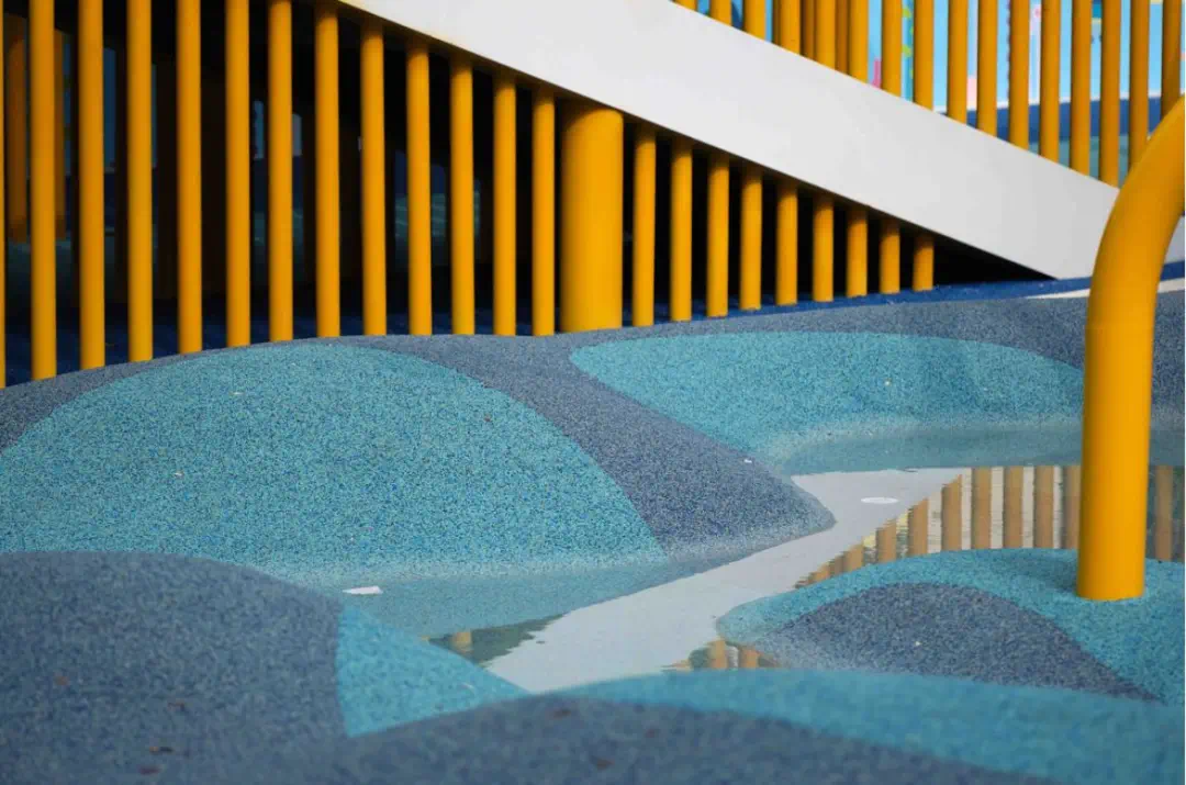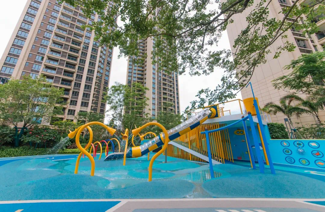 郑女士还跟我们介绍:“这个乐园挺贴心的,知道孩子们喜欢踩水、玩水,还设置了专门的玩水区,整个乐园的配套都用圆角细节,避免了孩子磕碰,针对不同身高的孩子设置不同高度的秋千,并注意摆放的角度,保证摆幅内无人进出或有人挡住,让孩子能尽情玩耍,也让我们更放心。”此外,乐园还专门配备了家长看护区,孩子们可以尽情享受玩耍时光,大人们也可以在此畅谈邻里趣事。