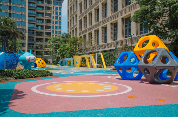 不仅如此,龙湖还配套了榄仁林休闲区,以环抱的方式为业主打造了相对私密的活动休息空间,树上悬挂树种名牌,业主可以带着孩子认识植物,亲近自然,寓教于乐。周边还配套了健身器材与休息木塌台,在这里健身、会客、闲谈、散步都是不错的选择。