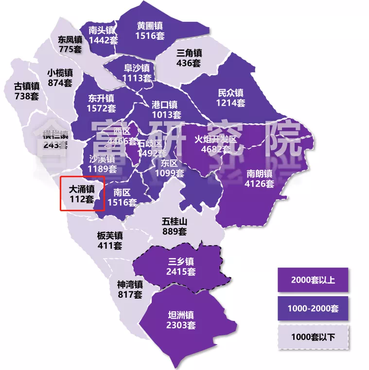 而成交量较低的,243天时间才卖了115套,相差超过了43倍。这么冷门的版块就是大涌镇。其中,1-7月合计卖出115套,8月份没有成交。