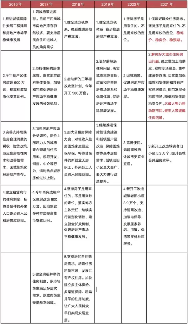 2021年整体导向仍为“房住不炒”,并重点转向解决好大城市住房突出问题,尤其是要“尽较大努力帮助新市民、青年人等缓解住房困难”,房子将回归居住属性。